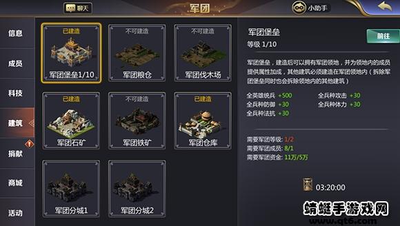 点击建造对应军团建筑,可提升对应兵种和兵力。