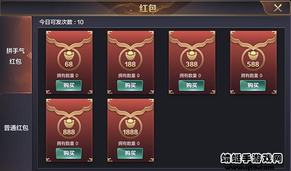 点击消耗对应金币即可购买对应红包,每日上限发10个红包。