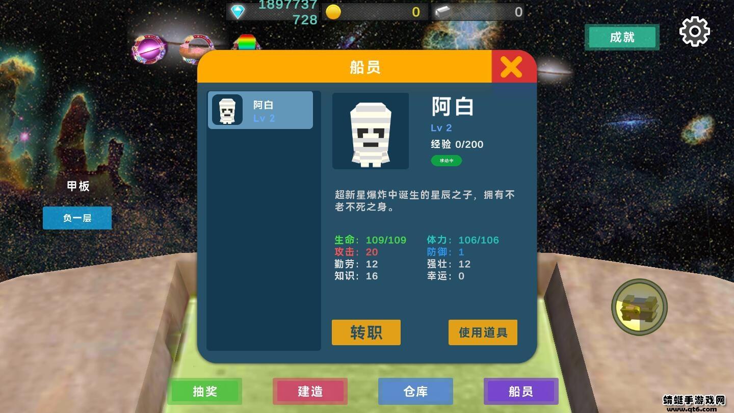 2.升级系统,点击船员和机器,可以查看属性.升级机器。