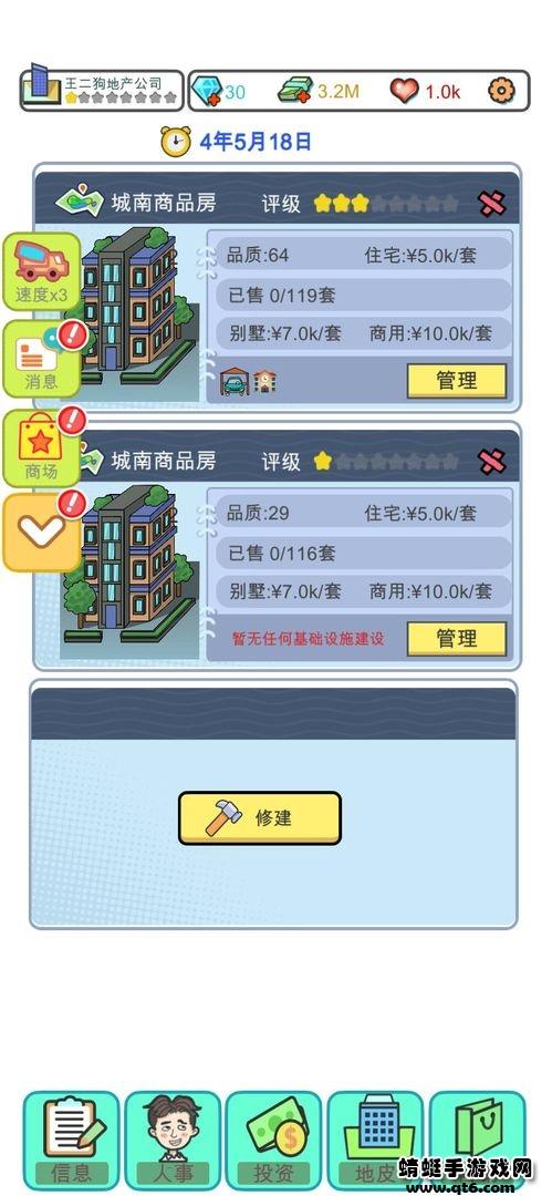 2.如果提升等级,知名度会逐渐提升,获得更多的地块竞标资格,投资更容易;
