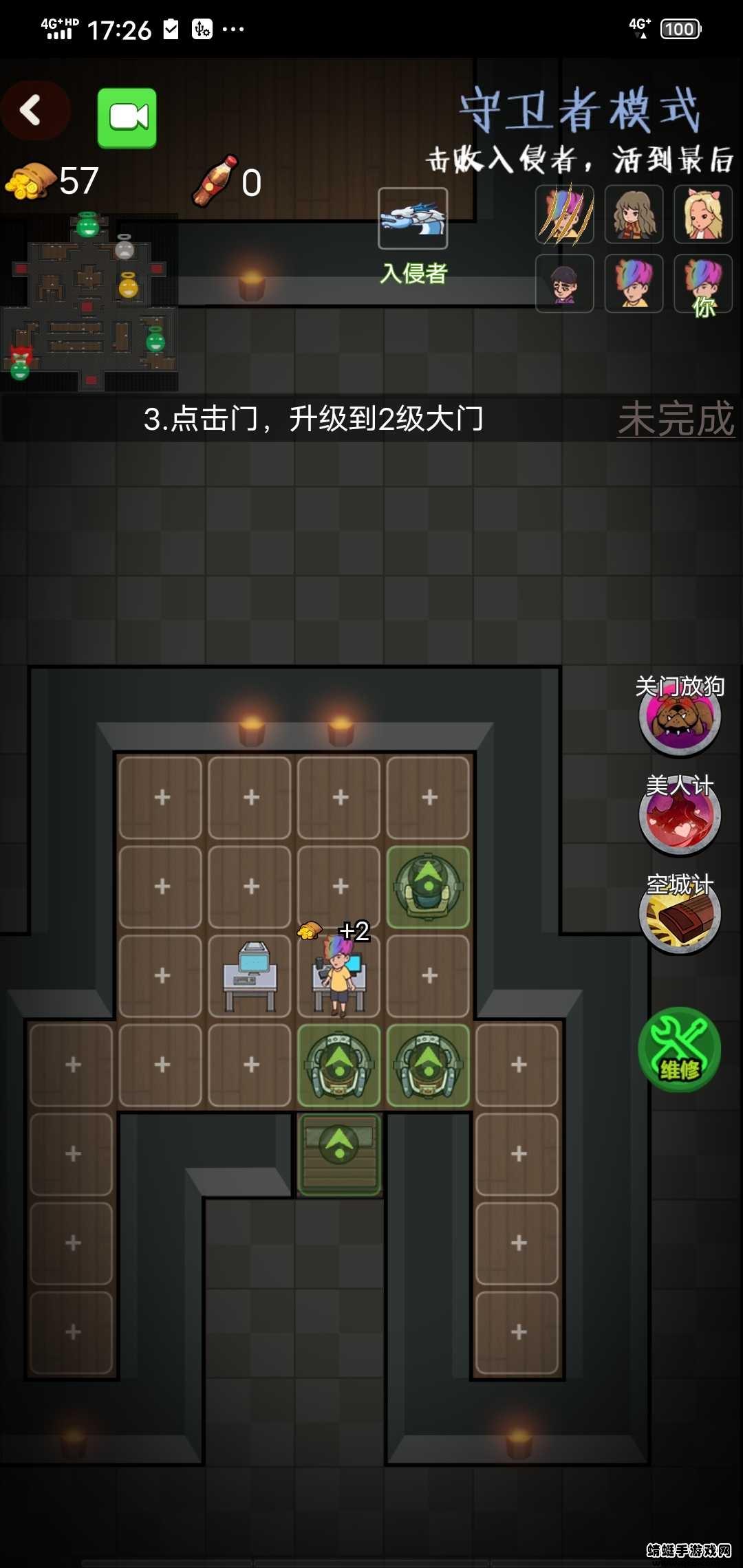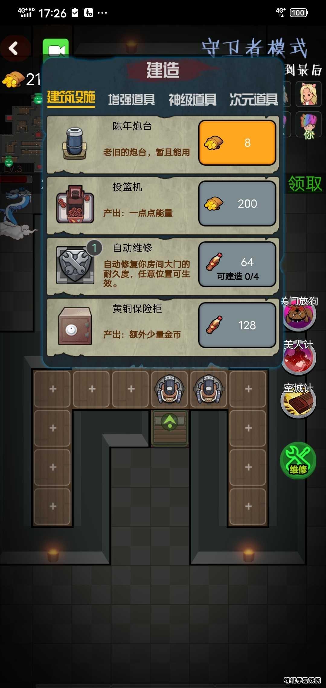 成为守卫者之后需要寻找房间进入,再工作台旁进行工作赚取金币,然后用来建设塔防;