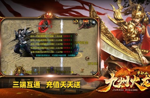 九州火龙传世来袭,开局一把刀,结局全靠砍,传世经典传奇游戏,传奇礼包奖励:5万的火龙币资源,(武林新丁)称号*1,传统的火龙系列传奇游戏,激烈刺激的竞技感受,热血非凡的打斗过程,动作打斗系列传奇带边制作,2023最新火龙系列传奇,召唤各色异兽助力玩家,非常值得去尝试的传奇竞技冒险游戏。