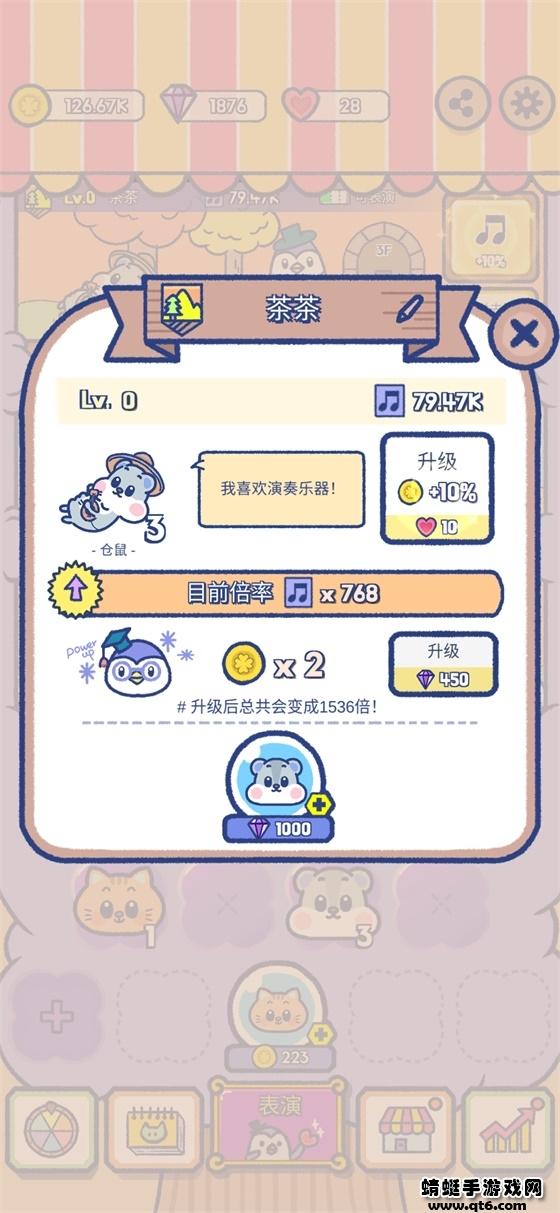 动物舞者游戏给大家破解成了无限的金币钻石,这是一款非常可爱有趣的模拟经营游戏,在这里您能够培养可爱的小动物来进行舞蹈表演,获得收益,解锁更多的小动物,游戏玩起来非常的治愈轻松,点击玩法非常的简单;