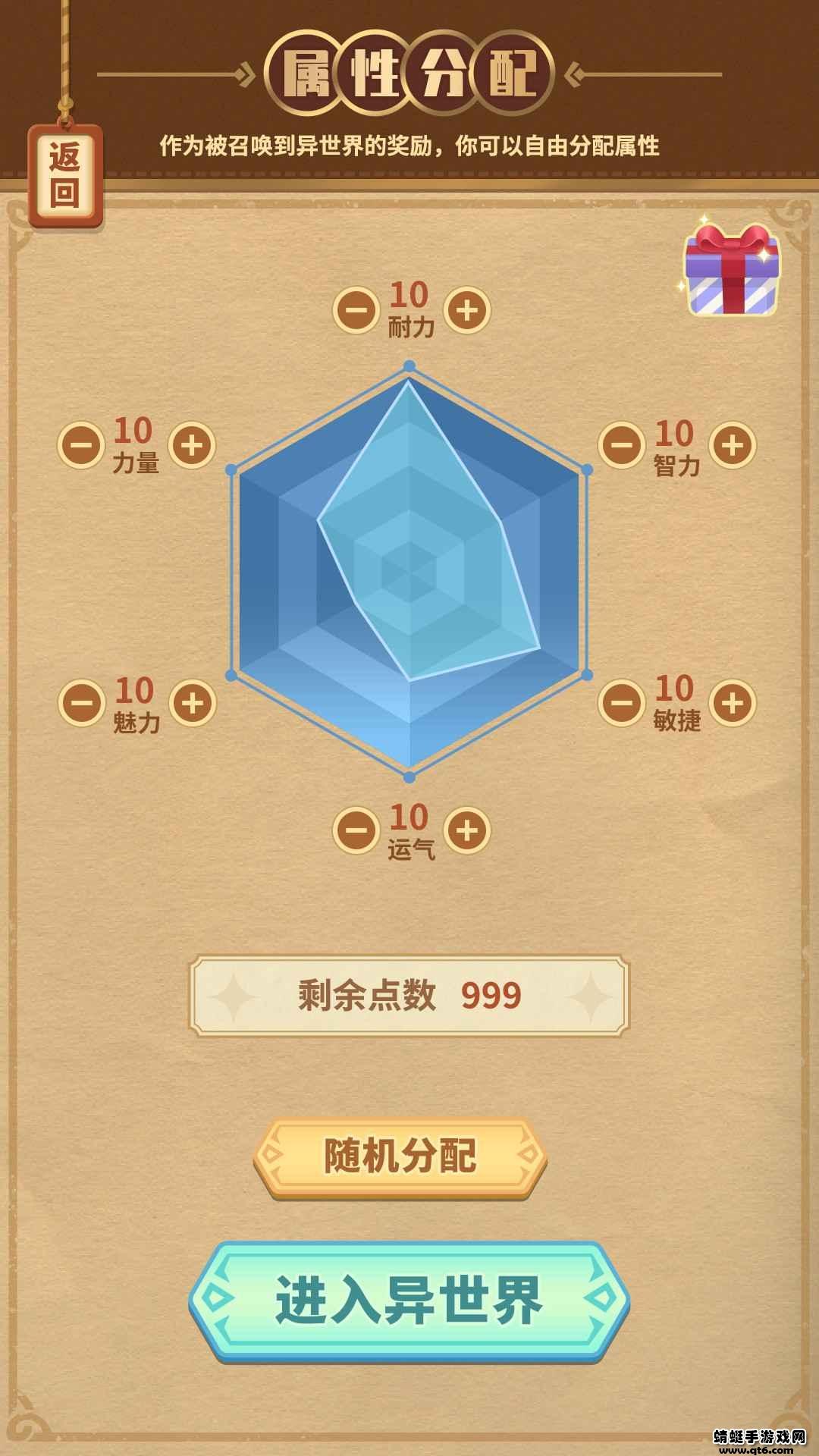 勇者穿越模拟器游戏可以免广告获得奖励,在这里您穿越到了异世界,您被迫成为一名勇者,需要您去打怪杀敌,消灭魔王,在这里您可以选择自己的天赋,获得不一样的能力,随机的事件让您不断做出选择,最终您的结局是什么呢;