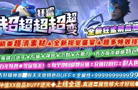 狂鲨超超超超超变传奇游戏来袭,刺激超变竞技传奇,神器资源轻松爆,传奇礼包奖励:(魔)神魔剑*1,神魔战将*1,神魔涟*1,免费去领取赞助福利,独家定制的传奇竞技游戏,单职业传奇竞技游戏,传奇三端轻松互通,上线送福利不断。非常值得去尝试的传奇竞技冒险游戏。