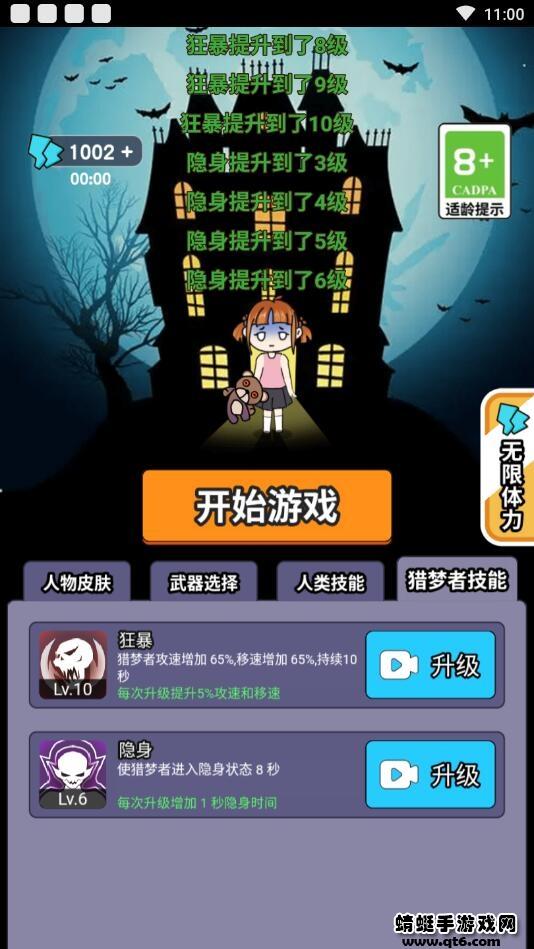 梦境大逃亡游戏可以免广告获得奖励,这是一款玩法很新颖的冒险游戏,有着微微恐怖的风格,游戏有两种阵营可以选择,能够升级强大的技能,玩家要躲避猎梦者的追捕,或者成为猎梦者来消灭人类,刺激的玩法等您来体验;