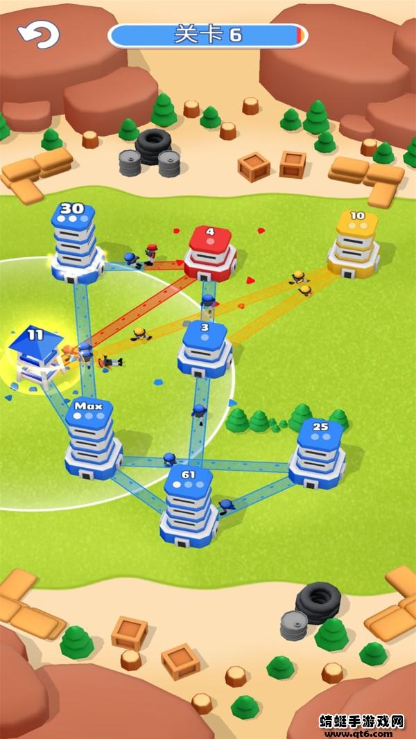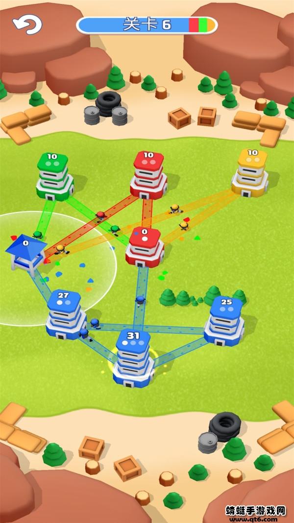 火柴人小帝国手游的游戏玩法还是非常的有新意的,可以通过类似与一种管道流向的方式,让自己的每一座塔都起的很高,这样就可以更好的生产出士兵打败敌人,当然了,敌人也可以通过不一样的分兵手段来提前消灭我们,游戏的玩法多种多样,值得大家探索!