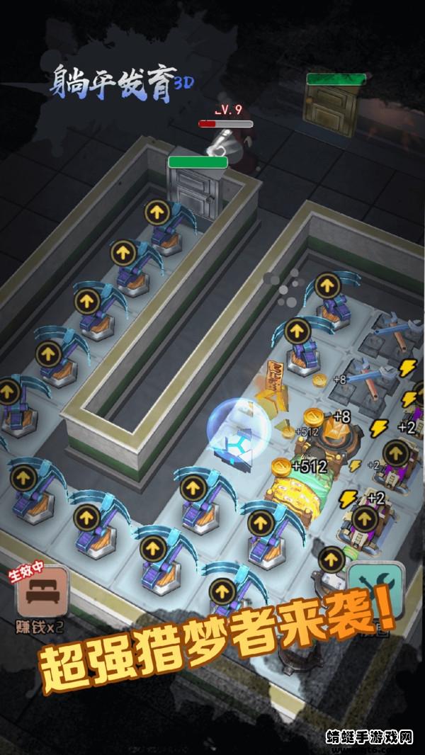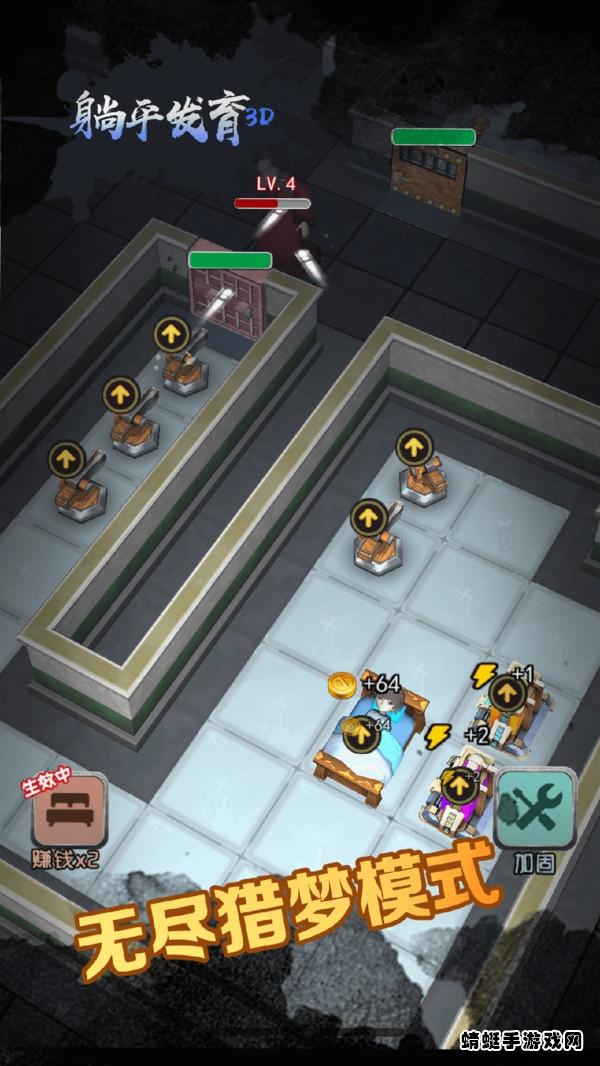 躺平发育3d版本中玩家们可以体验倒飞常好玩的策略冒险游戏,游戏相比较原版之外增加了3d版本的模式,你需要在游戏中控制自己的角色进入到房间中进行防御阵地的构成,升级各种防御塔来击败噩梦者。
