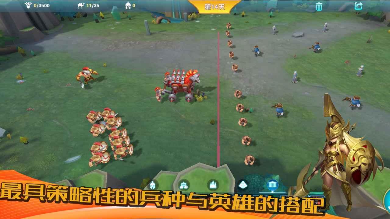游戏比较轻度,一场战斗大概在1分钟左右。我们可以随时随地的进行游戏或停止游戏。游戏重策略轻养成,兵种和诸神搭配,兵种和兵种搭配,兵种和神器搭配结合位置的摆放可以组合出多种策略克敌制胜。游戏也引入了rouglike元素,玩家在战役模式下遇到的关卡和获得的兵种道具都有一定的随机因素,但是每个战役都有一些特殊的主题和隐藏元素等待玩家探索。
