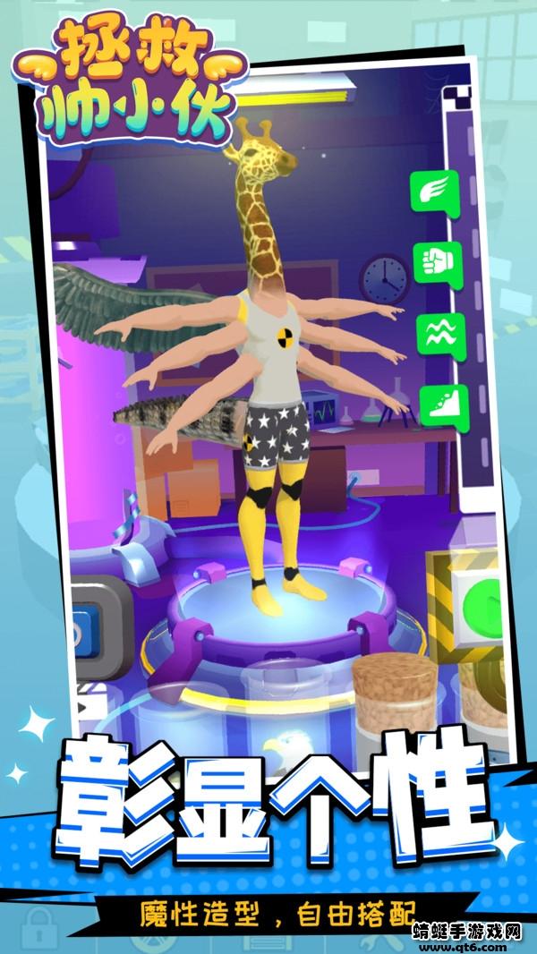 拯救帅小伙就是在抖音很火的变异休闲游戏啦,涂上各种药物就能让身体的一个部位变成一种动物的同种部位,是不是非常的有趣呢?每一个改变的部位都会有不一样的效果,有的适应在平地之上奔跑,有的则能够在水中游!各不相同又都有用处,赶快来试试吧!