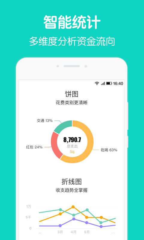 在用户体验上,最大程度简化了记账步骤,3秒钟即可记账一笔,大大节省了用户的时间。更有自动记账、拍照记账、周期记账、记账提醒、智能统计、最优结算方案等功能,让财务管理更高效