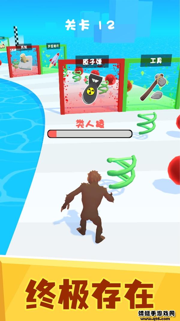 你知道人类是怎么进化而来的吗?满级人类进化小游戏的设定非常新颖,这是一款非常独特的休闲跑酷小游戏,游戏的画面清新简洁,在这里你需要收集道路中的道具,完成终极的进化。