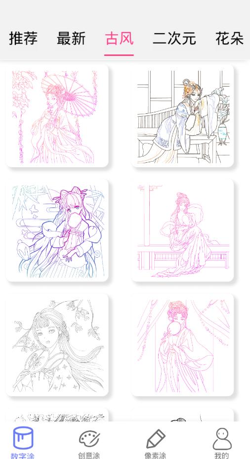 这款游戏内有海量绘画素材等你使用,而且更新特别的及时,让玩家每天都可以给最新的图片绘色