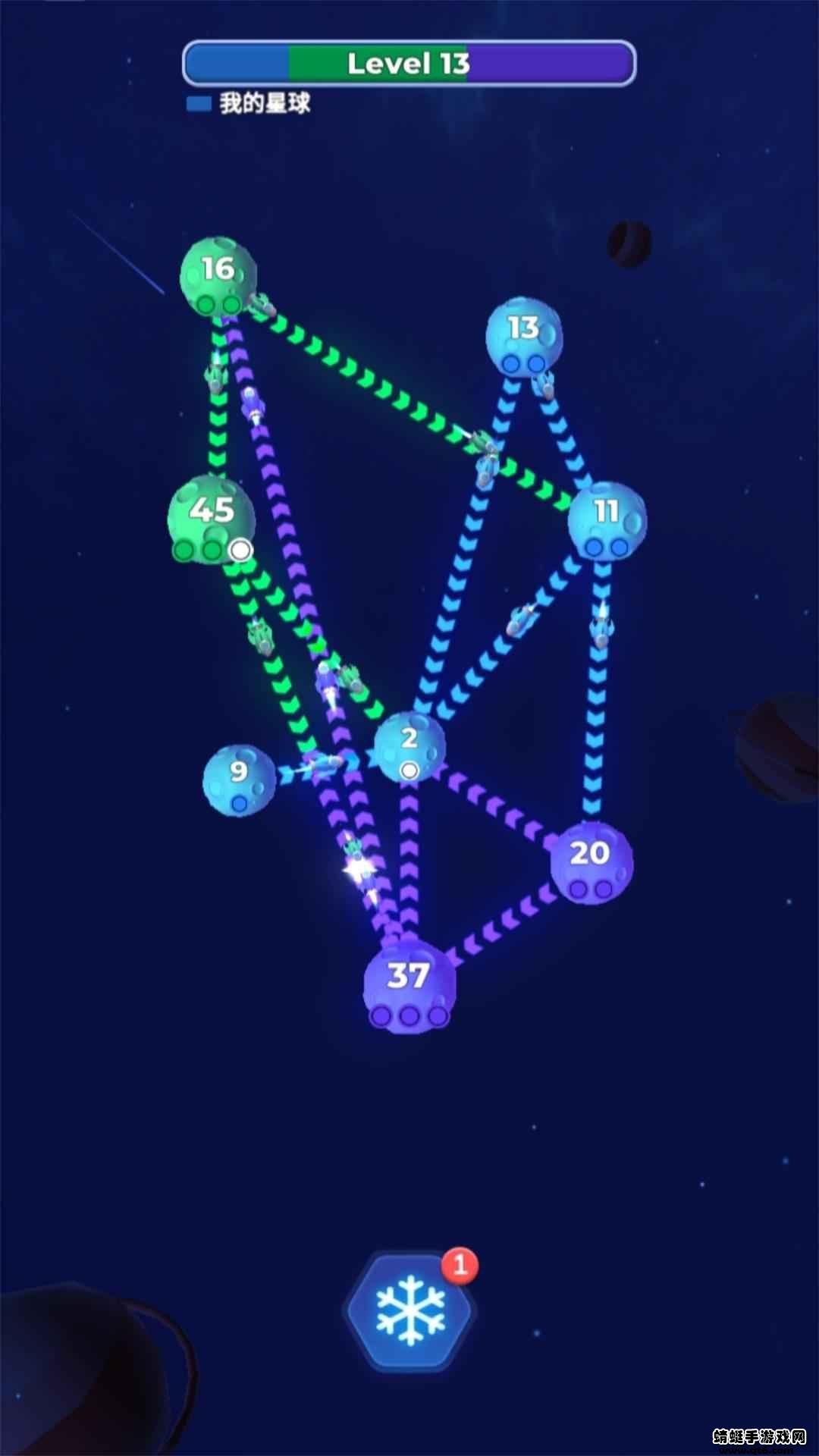 3.你可以通过滑动来阻止行星发出的锋,直到你最终占领所有的行星。