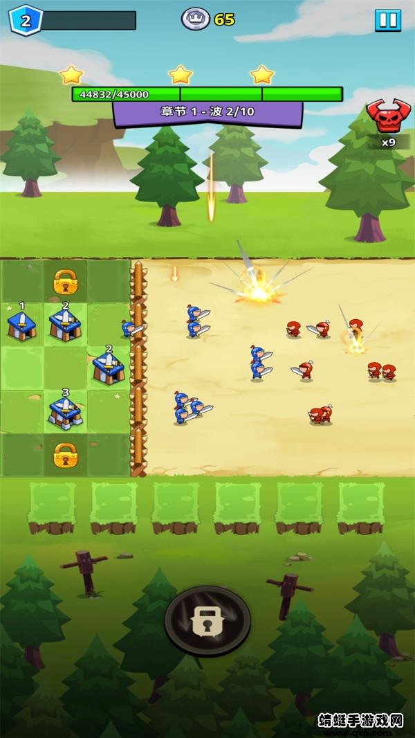 防御传奇手游是一款画风简洁的卡通风格塔防类游戏,双方对战一攻一守自然是正常的事情,我们需要保卫自己的城堡所以必须生产各种士兵来打败对手,敌人不断的派兵来骚扰我们,那我们必然也要将他们全部制服,提升防御塔,增加城防,增加士兵击溃敌人的防线!