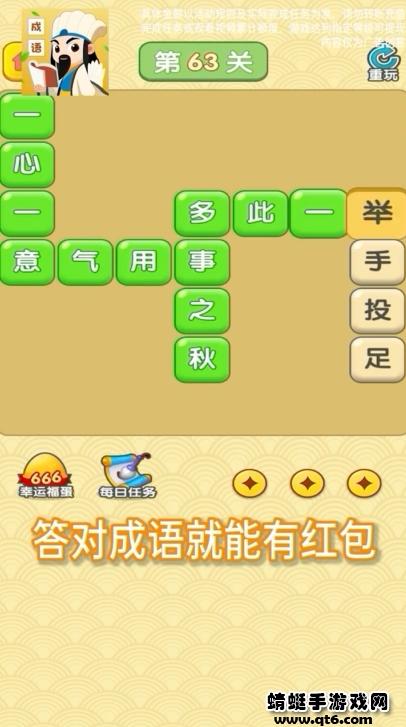 王者答人赚钱中玩家们可以通过答题的方式来获得更多的红包,游戏的成语数量非常的多,你不仅仅可以在游戏中通过答题的方式挑战自己的知识储备极限之外还能获得更多的成语知识来增加自己的词库。