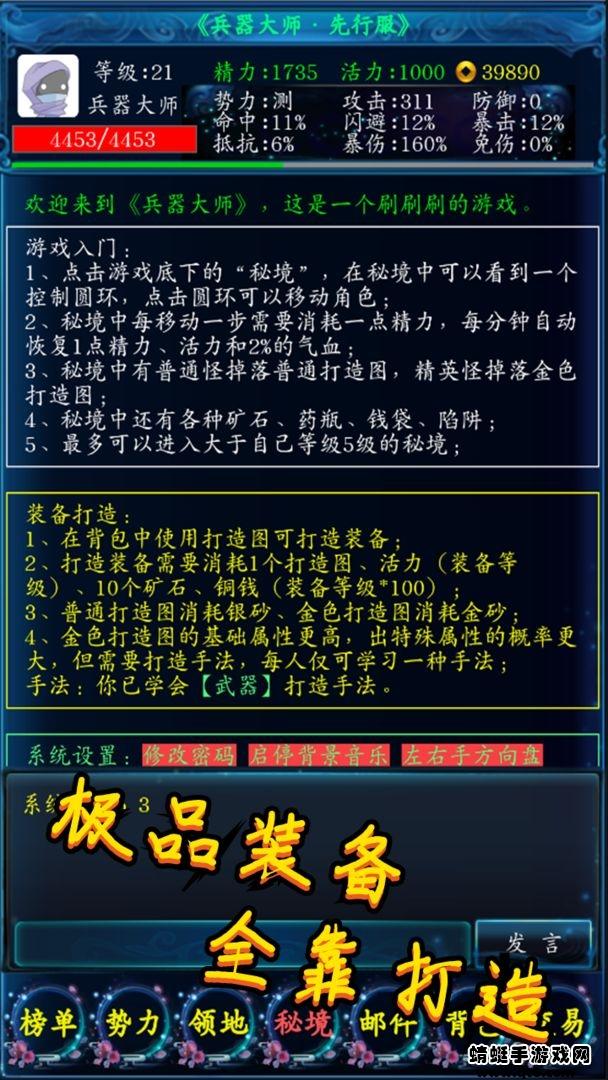 兵器大师游戏中给你呈现一个无尽的刷刷刷的快感,通自己打造装备的属性工具,可以让您在操作中,刷刷刷的游戏乐趣,更多的装备道具,可以让您很快的实现和探索更多有趣的内容,不妨体验一下。