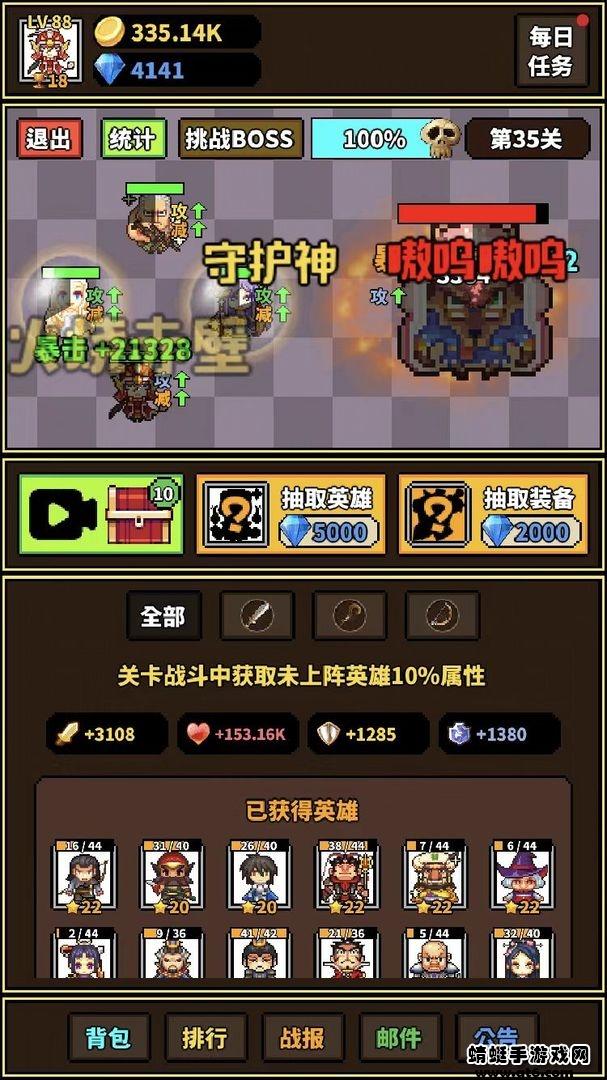 2、多个英雄养成,游戏为每个英雄和每个BOSS设计了特有的技能