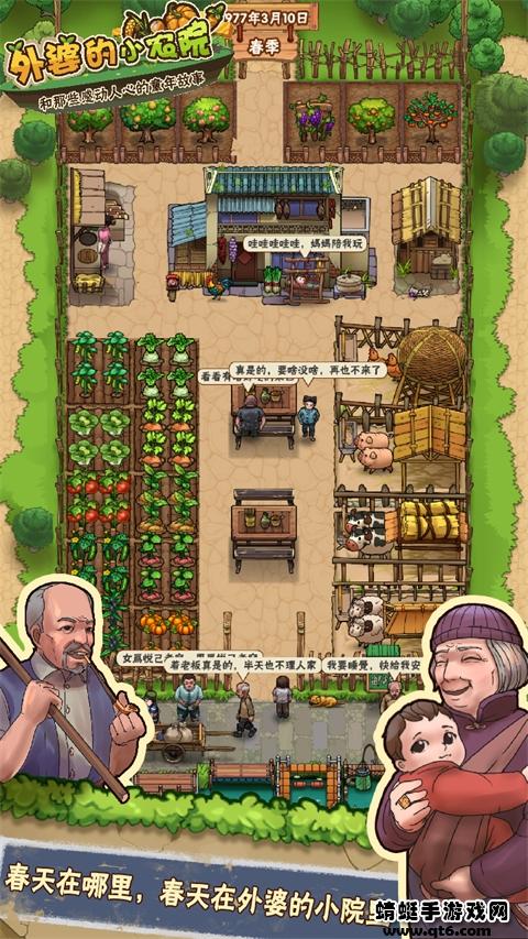外婆的小农院最新版是一款不错的模拟经营类的游戏,朴实无华的画风之下透露着淳朴的生活,这是一对勤劳的夫妇,生活在农村中,收获自己的种的果实,生活也还算不错,我们最为孙子跟随者时间线一直行走,游戏的设计非常的巧妙,值得大家来玩耍!
