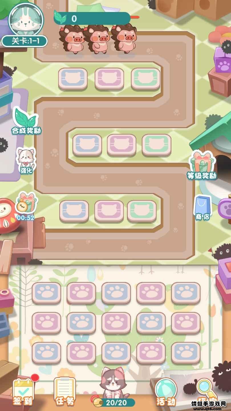 勇敢猫猫不怕困难是一款超级休闲的塔防游戏,这款游戏以可爱的猫咪为主题,玩家要合成各种不同的猫咪来进行战斗,对抗敌人,保卫自己的家园,还可以获取各种有趣的道具来增强猫咪,每次击杀敌人获得的奖励可以强化猫咪哦;