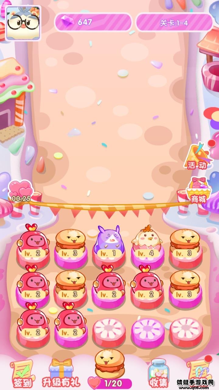 玩家升级可以获得资源,可以用于召唤更多的士兵,建立强大的甜品军团。