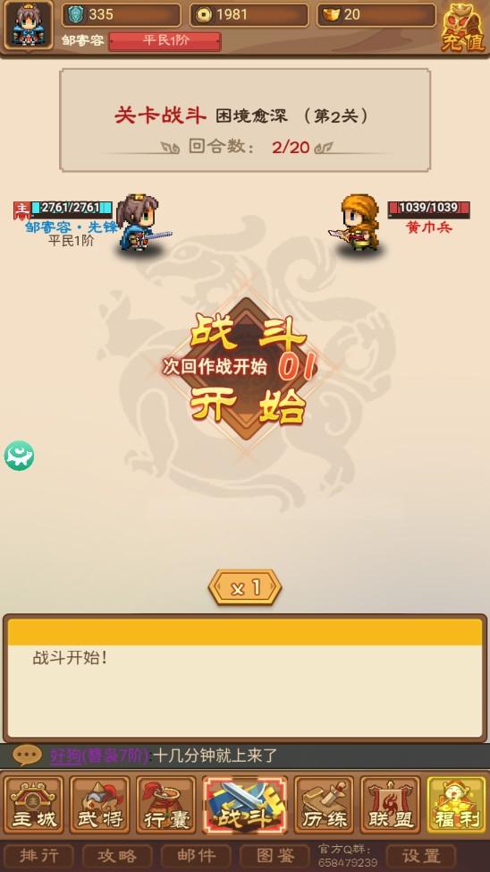 1、游戏整体画风是复古的像素风作为基调,三国历史作为背景,在战火纷飞的乱世中;