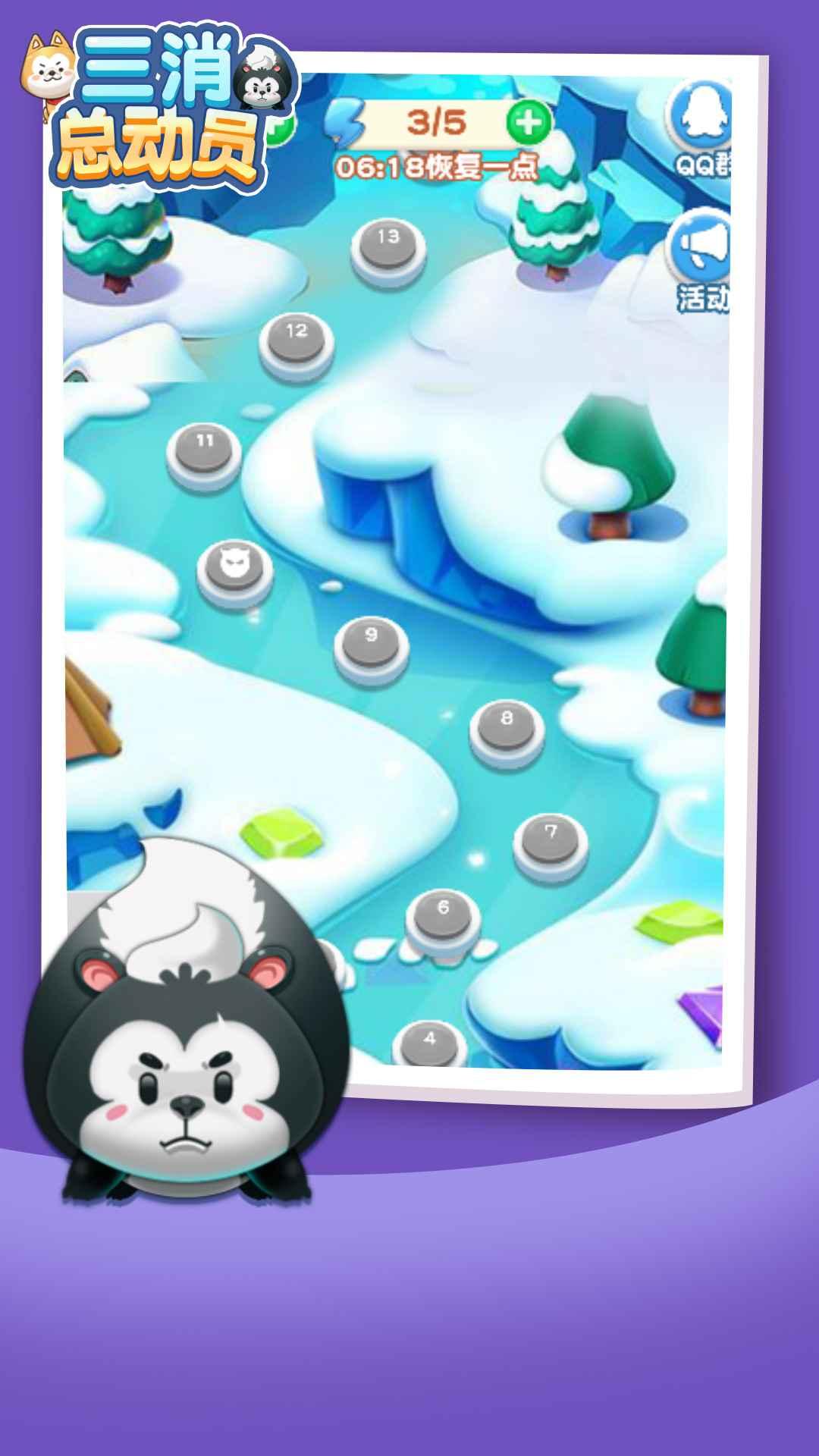 三消总动员是一款很减压的消除游戏,这款游戏的画风很可爱,玩起来也是非常治愈的,玩家需要找好角度和时机发射球球,让三个及以上相同颜色的球球连接在一起来消除得分,在游戏过程中可以获得各种道具奖励,让您玩得更加的舒爽;