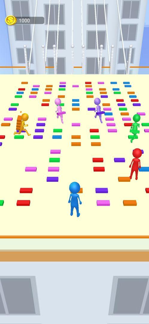 游戏中的每个关卡地图都完全相同,起始会有6-8人在同一空旷场地中收集与自己颜色相同的砖块,随意选择一条桥梁框架进行铺设,当玩家所铺设的桥梁完全贯通即可进入下一个场地。