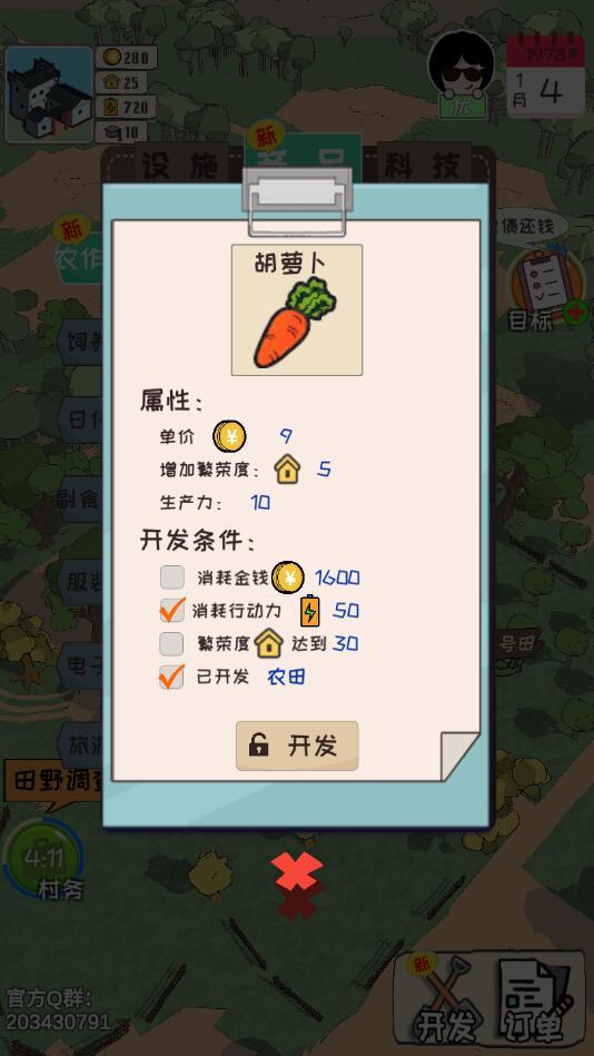 村子中农业也需要好好发展一下,只有把村长建设好你才能升级。