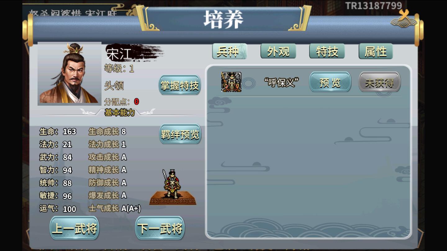 这是一款以《水浒传》为题材的联网单机回合制战棋类游戏。