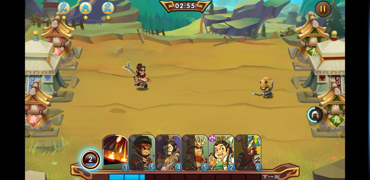 战斗场景分为3路,将军们会在放置的道路上移动,不会横穿马路。