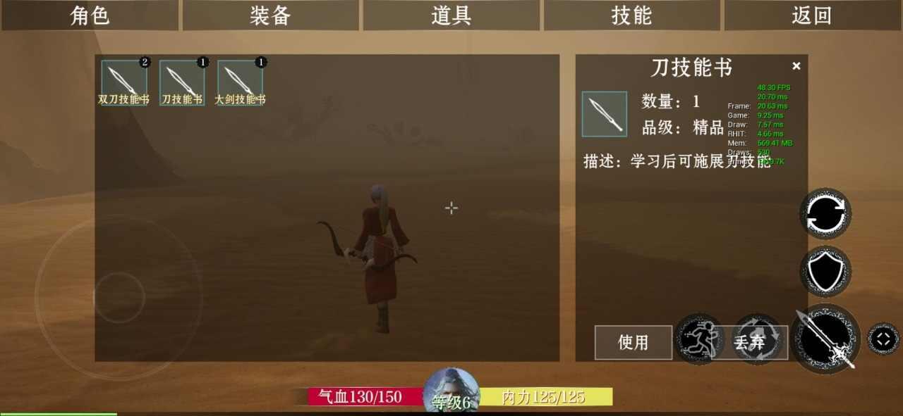 目前有刀,箭,大剑,双刀4种武器每个武器目前都有对应技能,掉落技能书后进行学习,然后配置刀快捷栏才能使用。