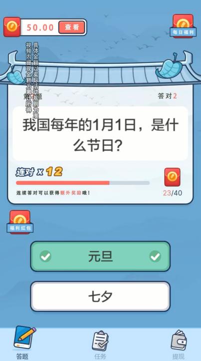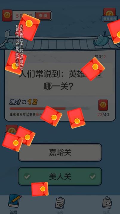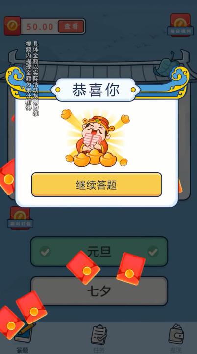 开始答题,每个问题弹出的红包可以忽略,直接进入下一个问题。