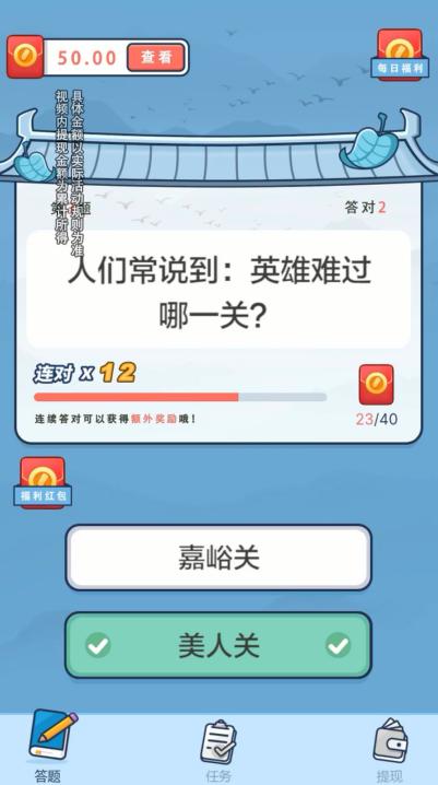 小游戏专家可以连续答对首发权,连击效果可以让收益翻倍。