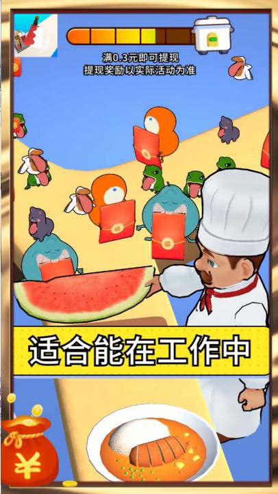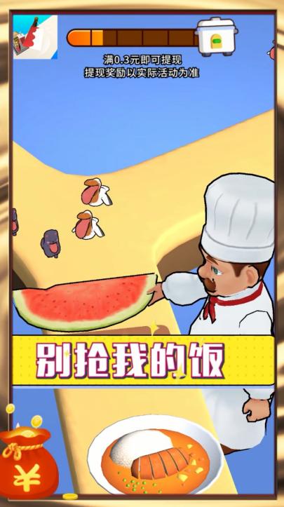 别吃我的饭红包版采用了非常好玩的休闲趣味模式,你需要作为一个厨师保卫自己的食物,利用各种道具将食物全面拦截下来,阻止他们偷吃你做的美食,将美食捍卫到底完成游戏的保卫任务还能获得红包奖励。