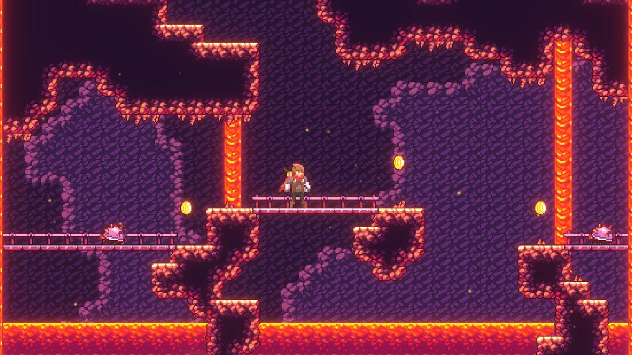 2D像素风平台跳跃游戏,您将在森林、地牢、熔岩洞穴等场景中展开冒险!