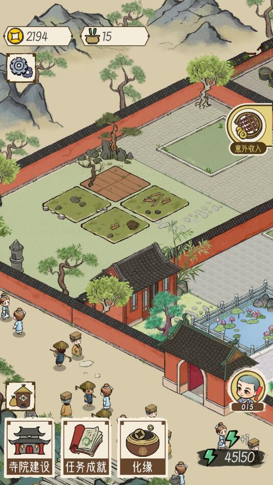 出家模拟器游戏给大家破解成无条件使用金币不减,还能免广告获得奖励,在游戏中您会成为一名出家人,您需要建造破败的寺庙,吸引香客前来祈福祭拜,让您的声望越来越高,还能够外出化缘,给您全新的模拟体验;
