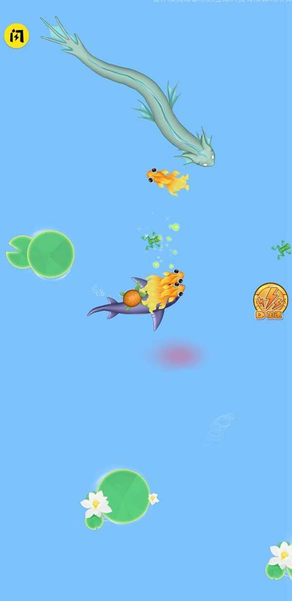当你面对比你强的对手,比如:锦鲤,甚至鲨鱼。你一定要躲它们远远的。只要轻轻一碰,你就会退回上一个等级的形态,最终是小蝌蚪。如果在小蝌蚪形态下,再被碰一下,游戏结束了,你也就输了。结束的时候,游戏会记录你最高纪录的形态。