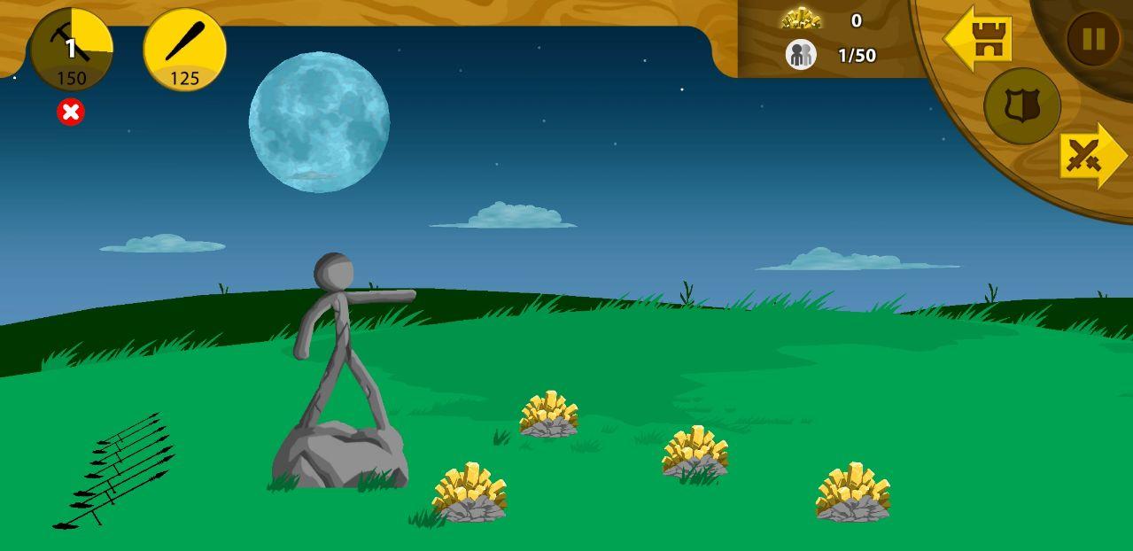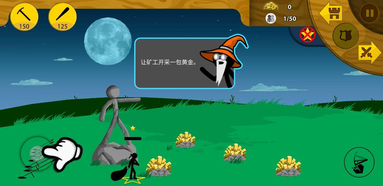 3.控制你的军队形成一个编队或指挥一个单位。你可以控制每个简笔画。建造单位,开采黄金,学习剑术,枪和矛,训练弓箭手,法师甚至巨人。摧毁敌人的雕像,占领所有领土。