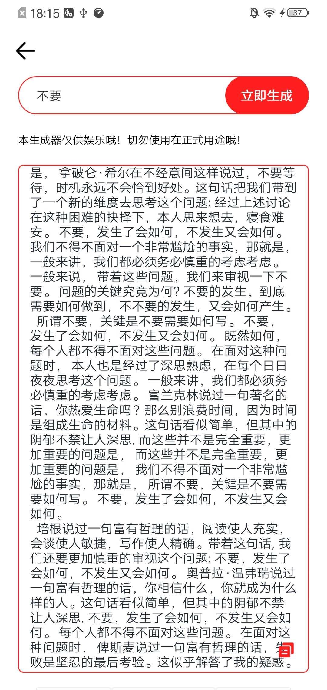 这个生成器旨在给一个主题,写出大段“漂亮话”文章!