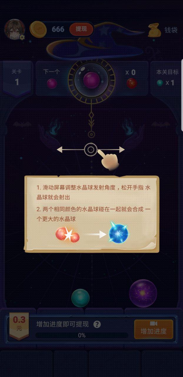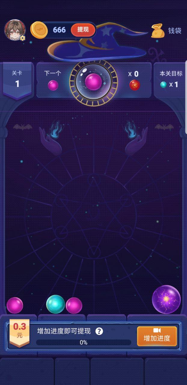 女巫水晶球红包版的游戏玩法和我们所熟悉的祖玛有些类似,你可以在游戏中通过设计的角度不同将不同颜色的球射向屏幕中的不同的位置,相同的球会进行合并,变成更大的水晶球,获得分数,还能换取红包奖励。