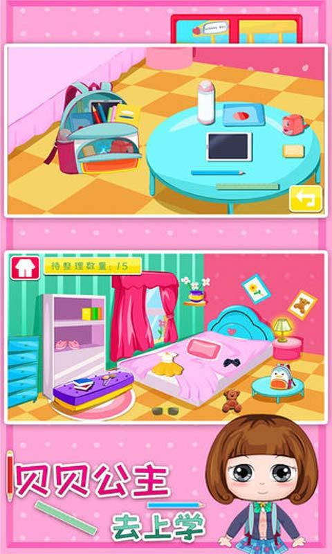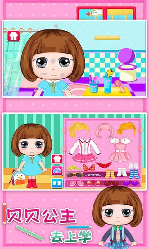 贝贝公主去上学是一款很适合儿童玩耍的益智模拟游戏,玩家需要帮助贝贝公主刷牙洗脸和换装等等,多种模拟玩耍活动,可以培养孩子的好习惯,游戏的画风也是很可爱的,贝贝公主的一天会做什么呢,快来玩吧;