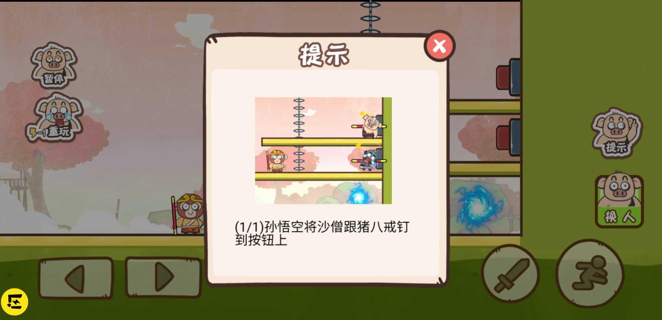 游戏一共有三位角色:猪八戒,沙和尚,孙悟空