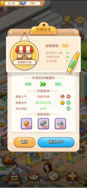 点击左上角,打开我们的店铺信息,可以看到一个扩建店铺的界面