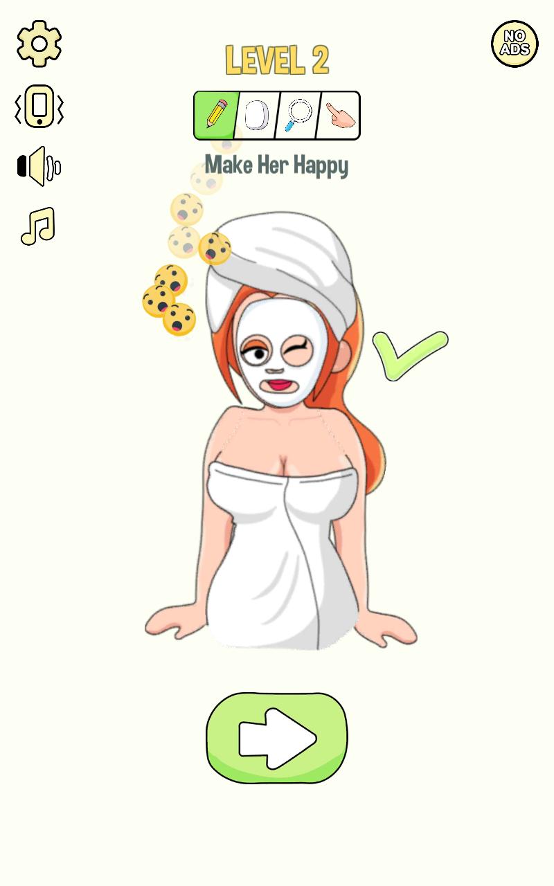 游戏是一款非常简单明了的游戏,上手也非常简单,玩家只需要不断地思考帮助角色解决他们的爱情问题,具体体现在在关卡中发现一些隐藏的线索才能发现真实的寓意。