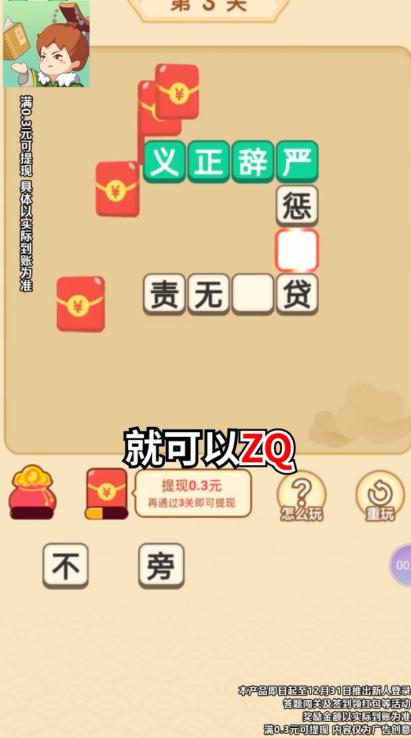 1.q版画风挑战成语闯关。有很多不同的关卡等着你去参与。回答问题有很多奖励。