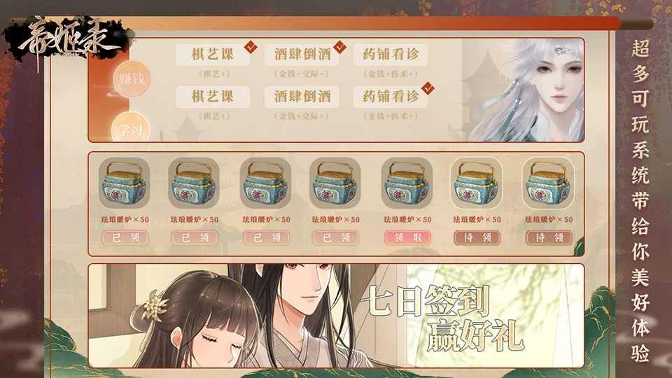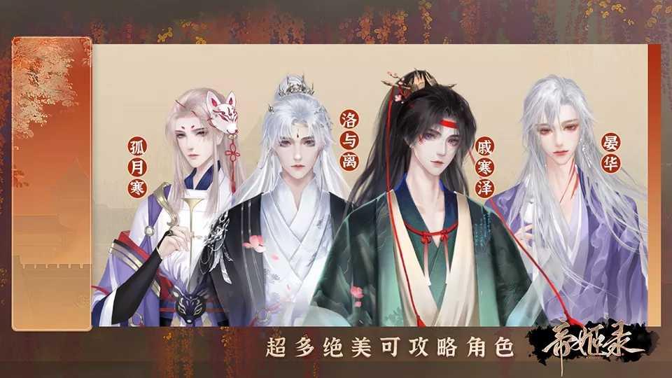 帝姬录破解版橙光游戏当前版本是清软大神破解的无限鲜花+金手指版。帝姬录破解版橙光游戏是一款好玩的互动剧情女尊游戏,在这款女性向游戏里,玩家可以换装、探索剧情、坐拥美男。