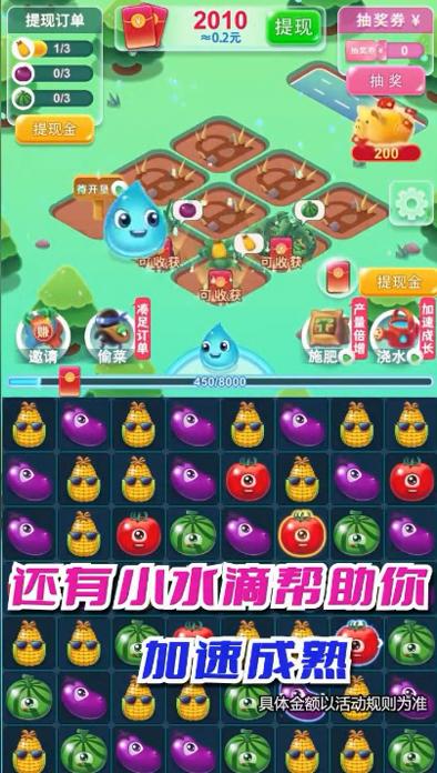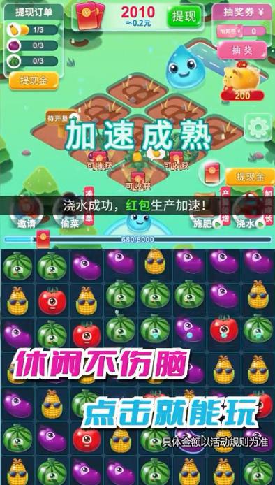 致富小庄园红包版的游戏玩法非常简单有趣,你只需要不断地通过消除的游戏方式获得游戏中的道具帮助我们的农作物进行生长即可收获到各种果实,多样的收获会让你产生很大的满足感,并且完成一些任务后还能红包提现。