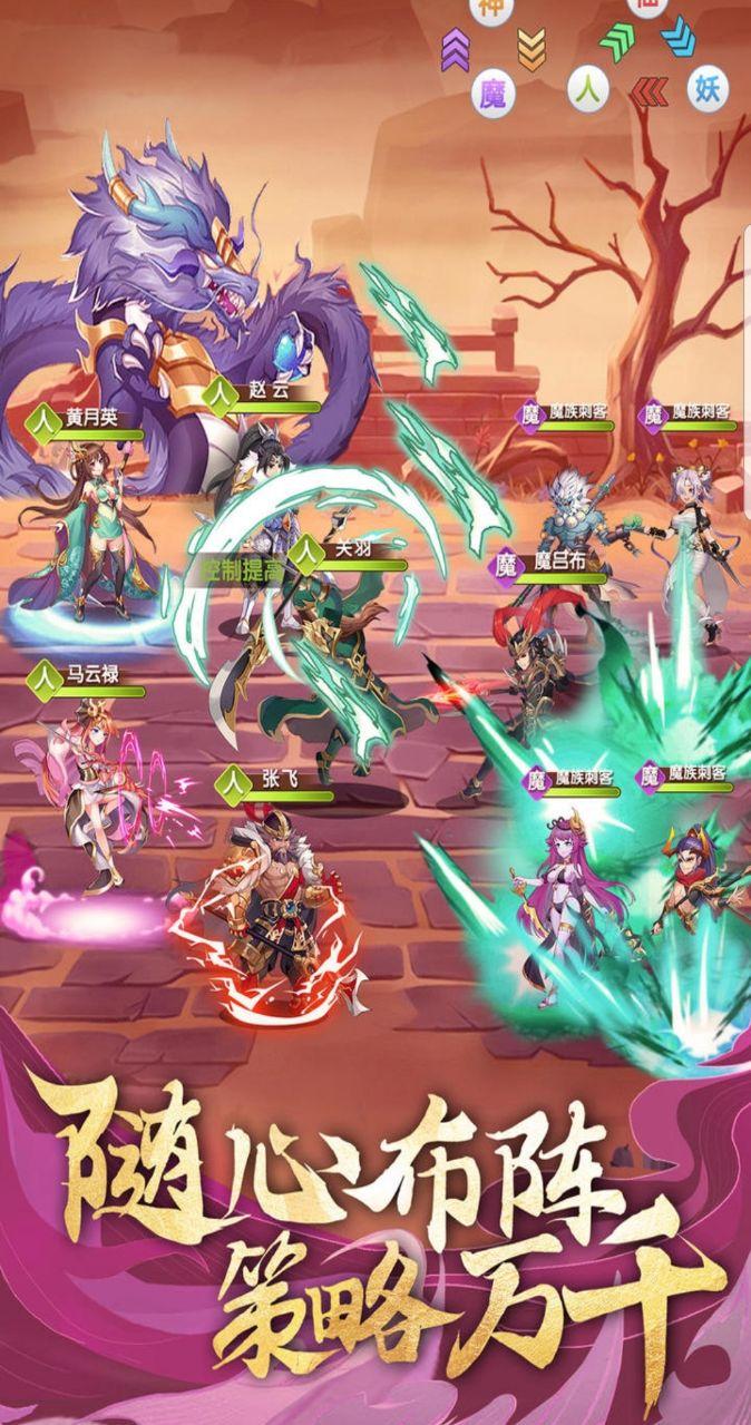 2.你将掌控你指挥下强大的三国精英武将,释放核心终极意义,轻松虐敌,击败敌方阵容。