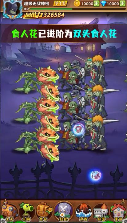 疯狂僵尸的玩法应该讲是植物大战僵尸的变种版本了你可以在这款游戏中见识到各种奇异的僵尸品种和变异进化的植物,通过战斗可以让植物进行超级进化,变得异常强大,但是在面对僵尸的时候还是会有不足,需要更强大的进化之力。